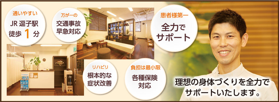 お子様からご年配まで、ひとりひとりに合わせた施術と運動指導で、痛みの無い理想的な身体づくりを全力でサポートいたします。